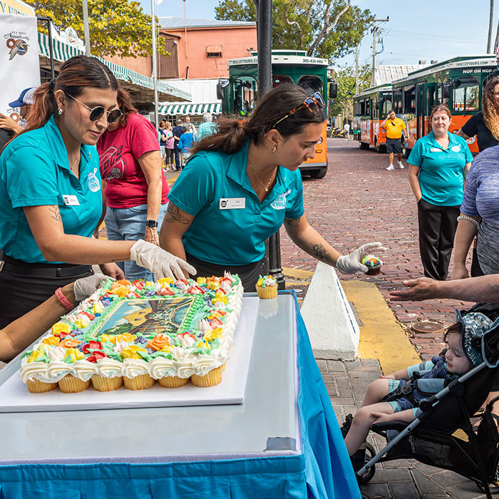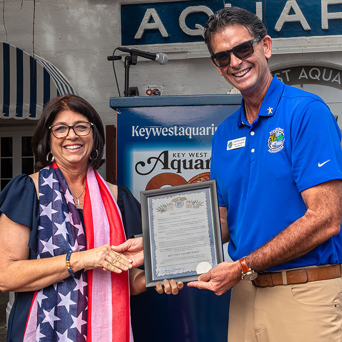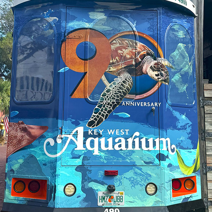 The aquarium opened its doors on February 17, 1935, and is still going strong. During a public ceremony, Mayor DeeDee Henriquez proclaimed February 17 “Key West Aquarium Day,” and presented the proclamation to Director of Operations Clinton Curry. Specially decorated cakes were served, and the new commemorative trolley wrap was unveiled. Sheldon C. Turtle appeared, joined by Turkey the red-footed tortoise, for photo ops galore! Ed Swift III was in attendance to speak at the ceremony and made sure to say hello to Turkey as well.