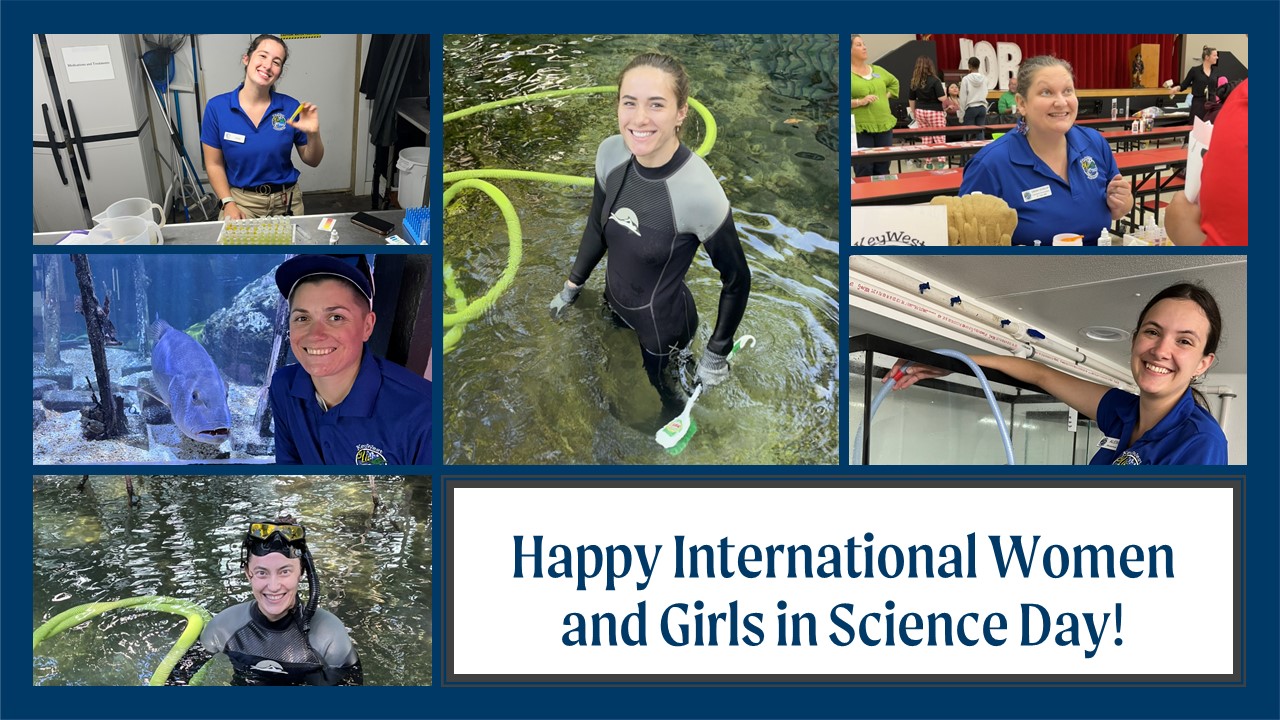 In February, the aquarium celebrated International Day of Women and Girls in Science. We are lucky to have some amazing ladies on our team and were excited to celebrate them! Left column, top down: Senior Aquarist Jenna Ward, Aquarist AmMathee Stott, Aquarist Supervisor Brooks Barrett; Center: Aquarist Taylor Brown; Right column, top down: Outreach Coordinator Sarah Dunlop, Aquarist Alexus Cole